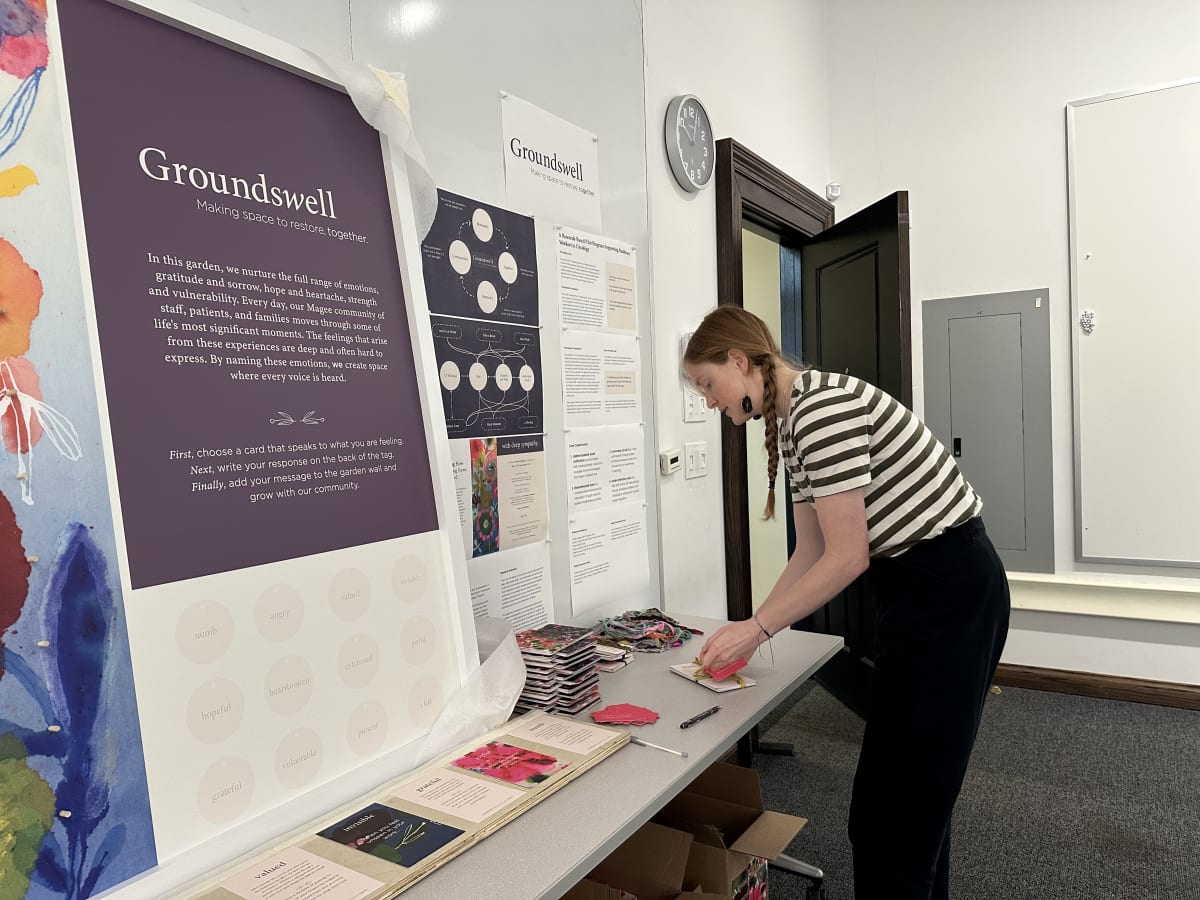 Through Groundswell, we discovered what it means to practice healthcare design rooted in participatory research. We learned how to navigate transdisciplinary collaboration, coordinating physicians, nurses, fabricators, donors, meditation teachers, and hospital administrators toward a shared vision. More importantly, we learned to attune our design process to amplify rather than impose, to honor existing community innovations, and to build trust through sustained presence. This project fundamentally shaped how we approach design: not as outsiders with solutions, but as collaborators creating conditions for what’s already trying to emerge.