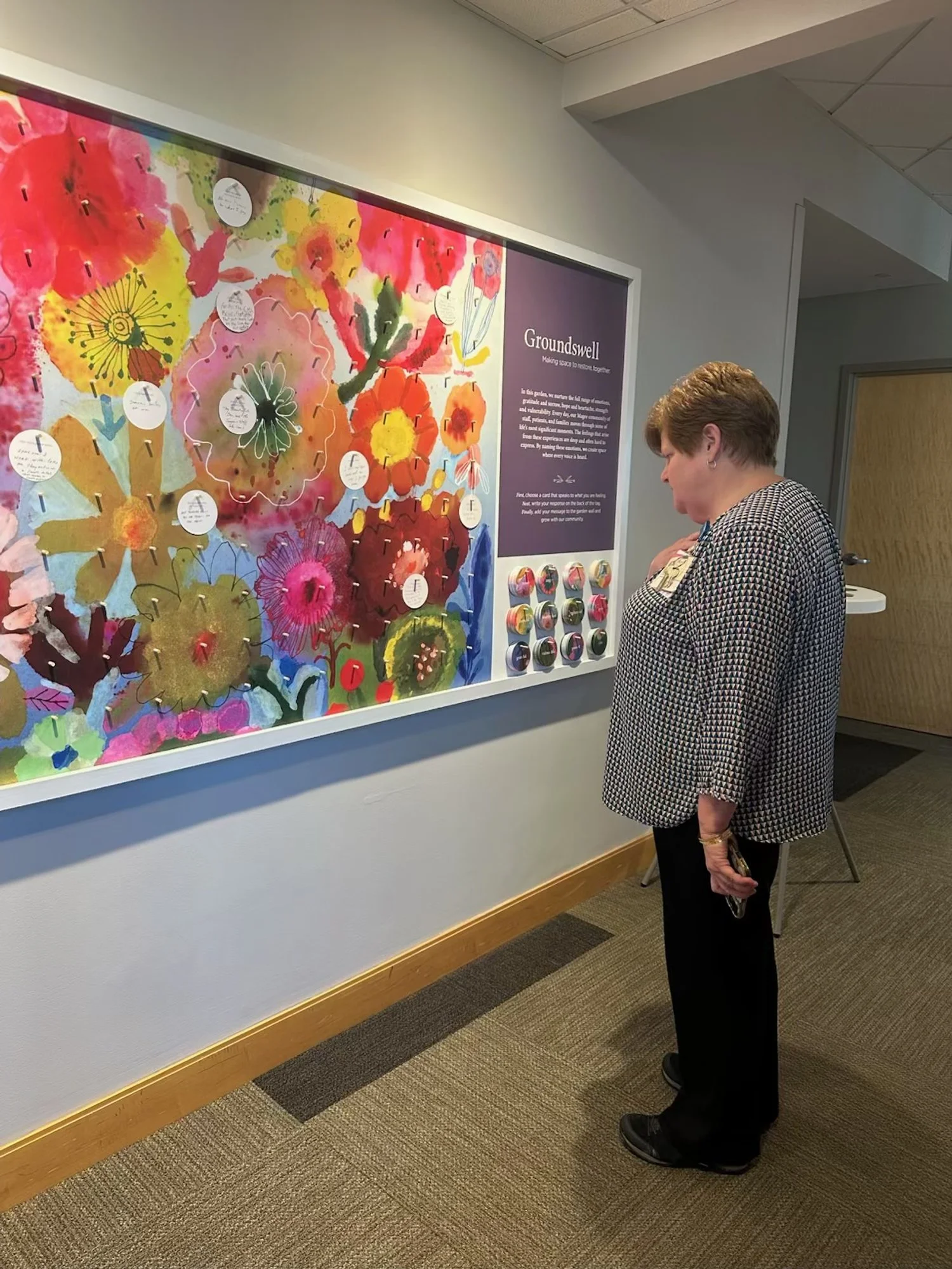 The components of this design ecosystem serve as a multi-dimensional approach to cultivating the conditions for culture change to emerge from within the care community. This movement starts with introducing the language of grief and support, creates physical and emotional space to process, and invites participation and collaboration. Through voluntary Groundswell Steward program managers in each department, we hope that this gesture will scaffold into more co-created support systems.