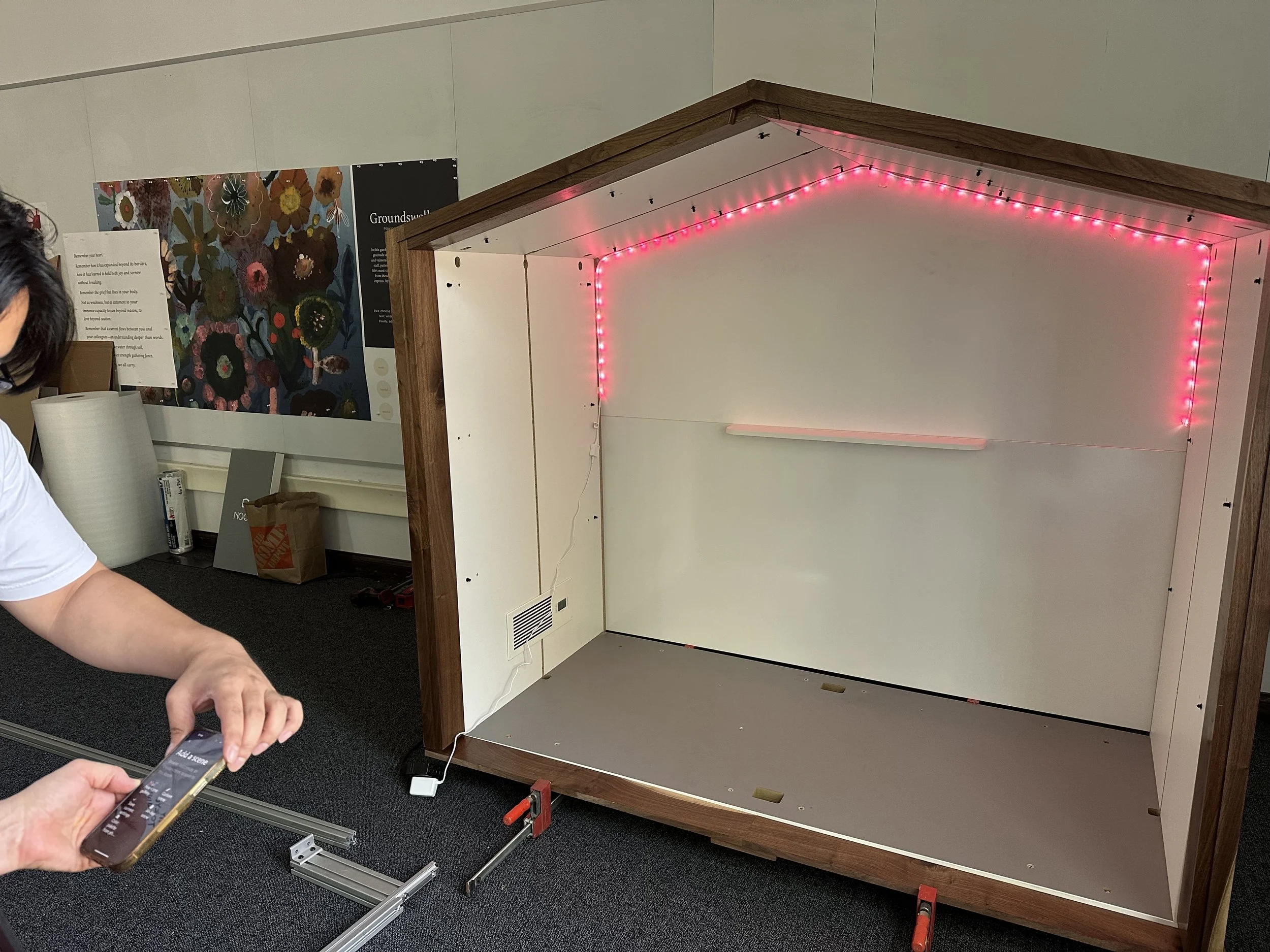 I was able to secure us the donation of the pod itself from NookPod ($13k value) in June and once it arrived we started to test the flow and interior design. We ended up working with the incredibly talented Greg Baltus to build out and customize the pod experience. Through partnerships we received donations of wood, woodworking, finger labyrinths, printing costs, data sensors, high-tech door locks, and more. We went through multiple rounds of feedback with staff and hospital administration while coordinating the preliminary research assessments for the quality improvement study.