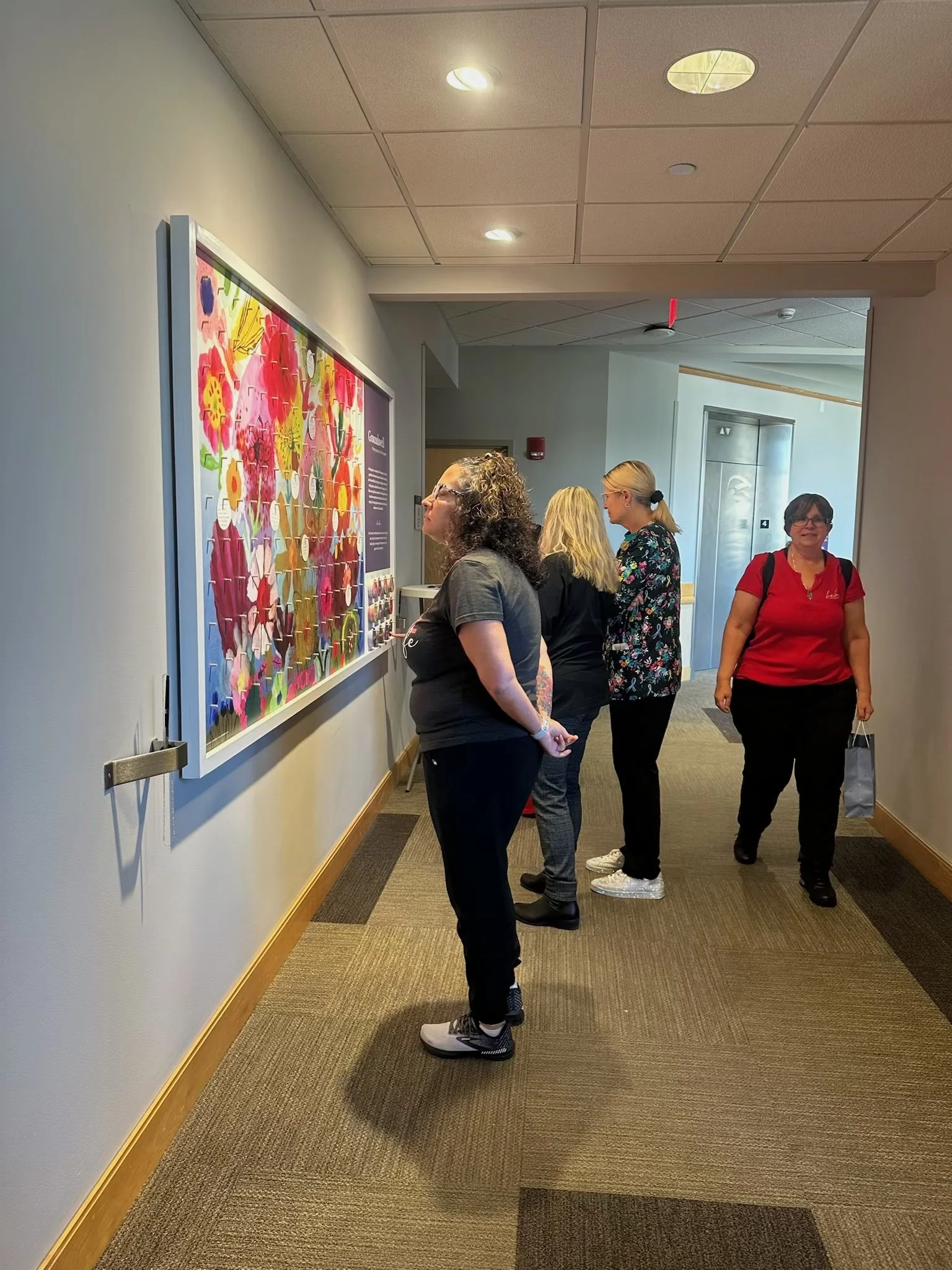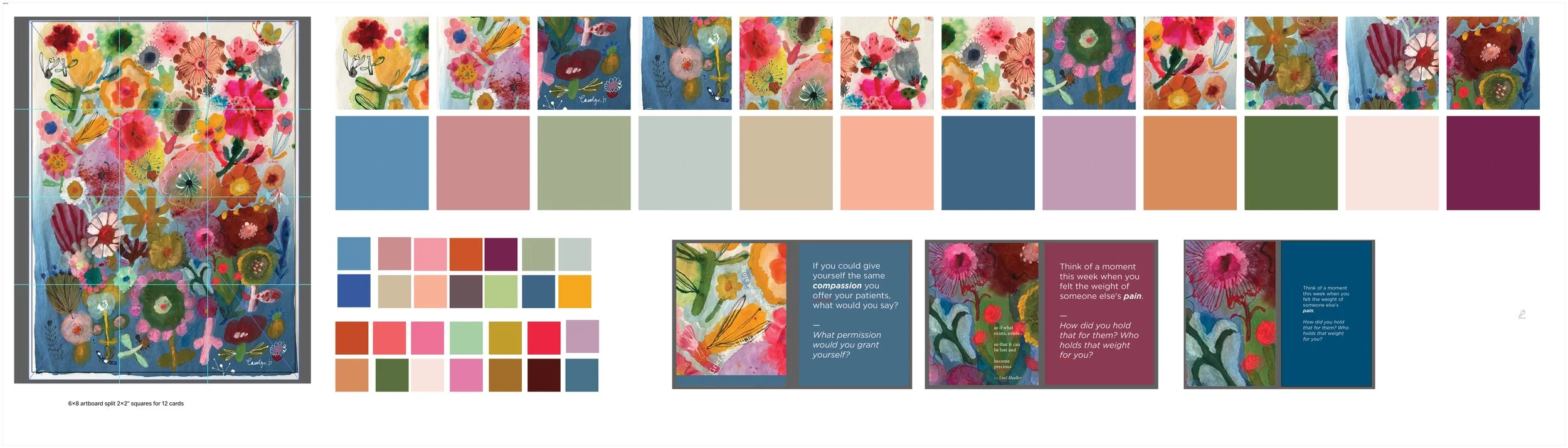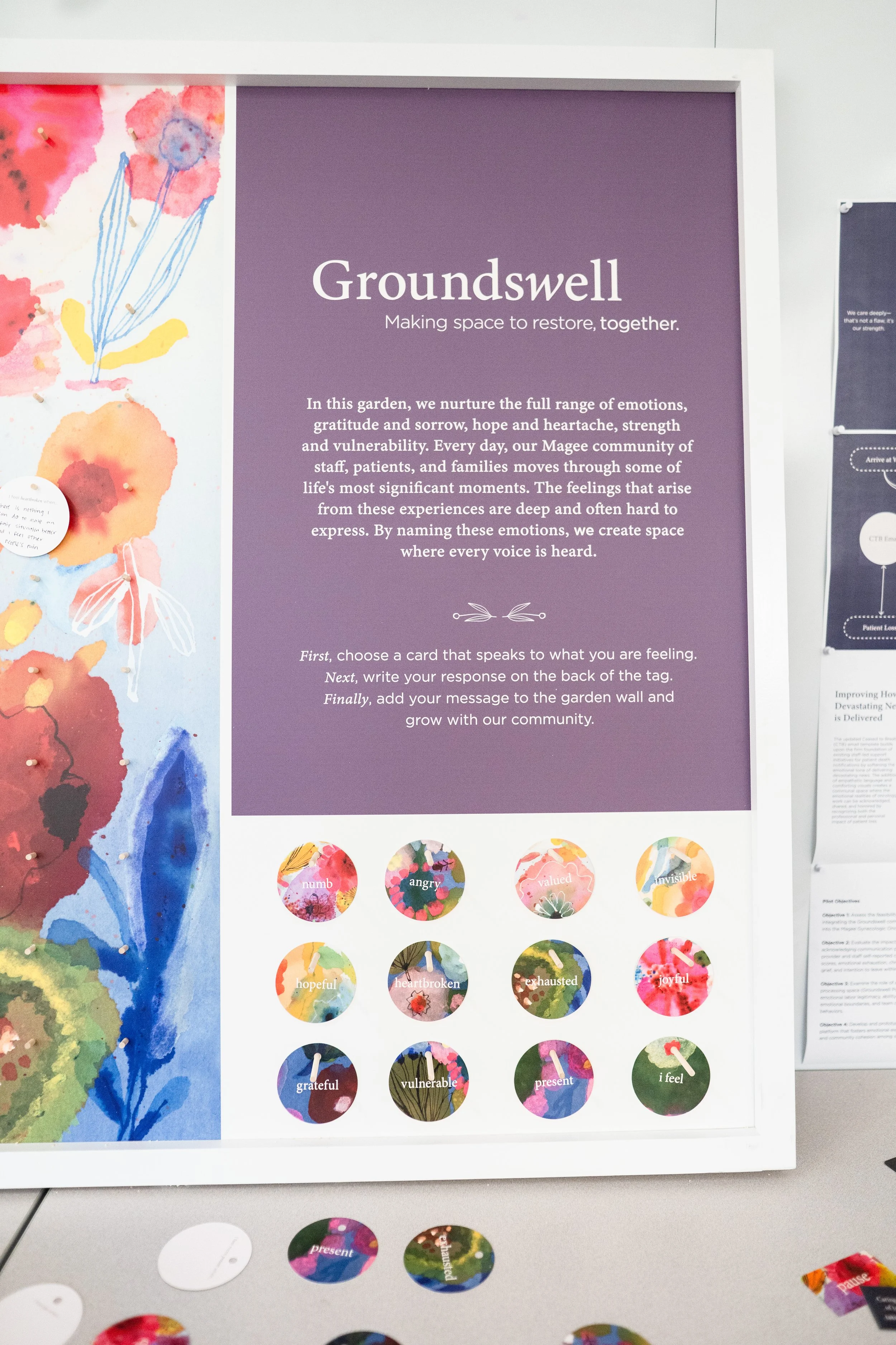 From June to August we hit the ground running on turning Groundswell into a reality. First we needed to get organized as a team and identify projected goals. We knew that getting the language right and approved by hospital administration was the first and most important element. Brand identity and art became our first priority and we were thrilled to work with Carolyn Gavin for the artwork. As a mostly remote teammate, I spent most of my time crafting the copy, coordinating the project, and doing donor outreach for material donations.
