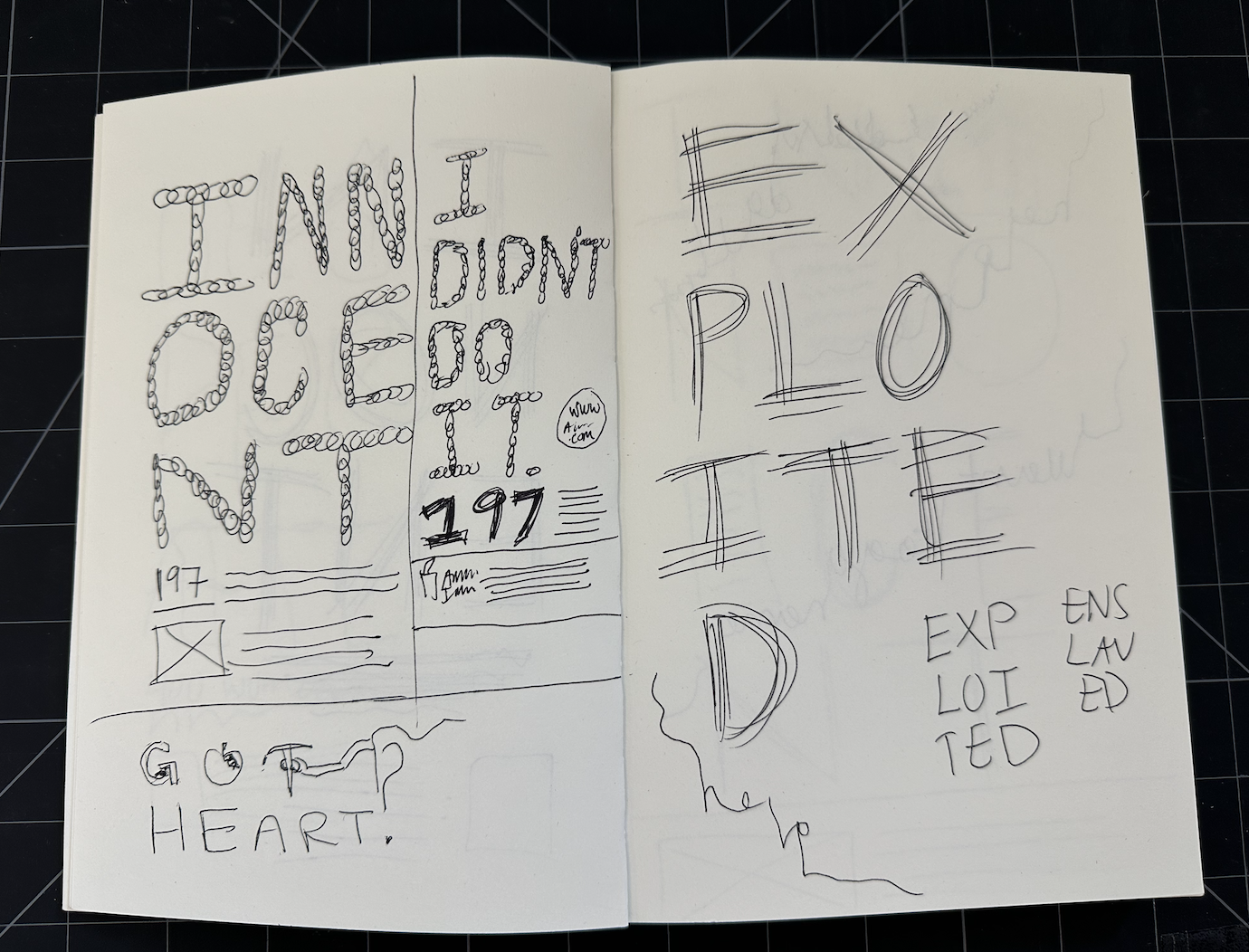 I sketched 30 low-fidelity poster concepts, experimenting with object typography and symbolic imagery. I focused on statistics that evoked strong reactions, using them as anchors for conceptual development.